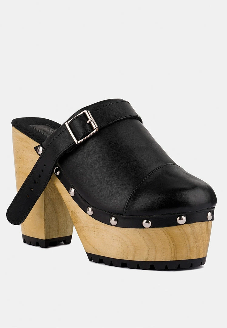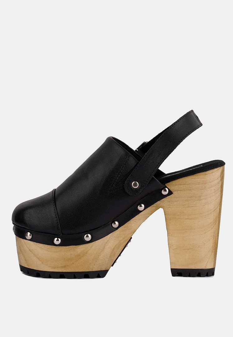 Hand chiseled raw natural wood set to perfect fitting along the feet curves – this pair of handcrafted high block heeled clogs is a delight! Made from Natural Soft Leather and lined with organic cotton lining, it looks beautiful with lined studs. The shoe is as natural and biodegradable as it can be. It has padded insole which cuts strain and relaxes the feet.