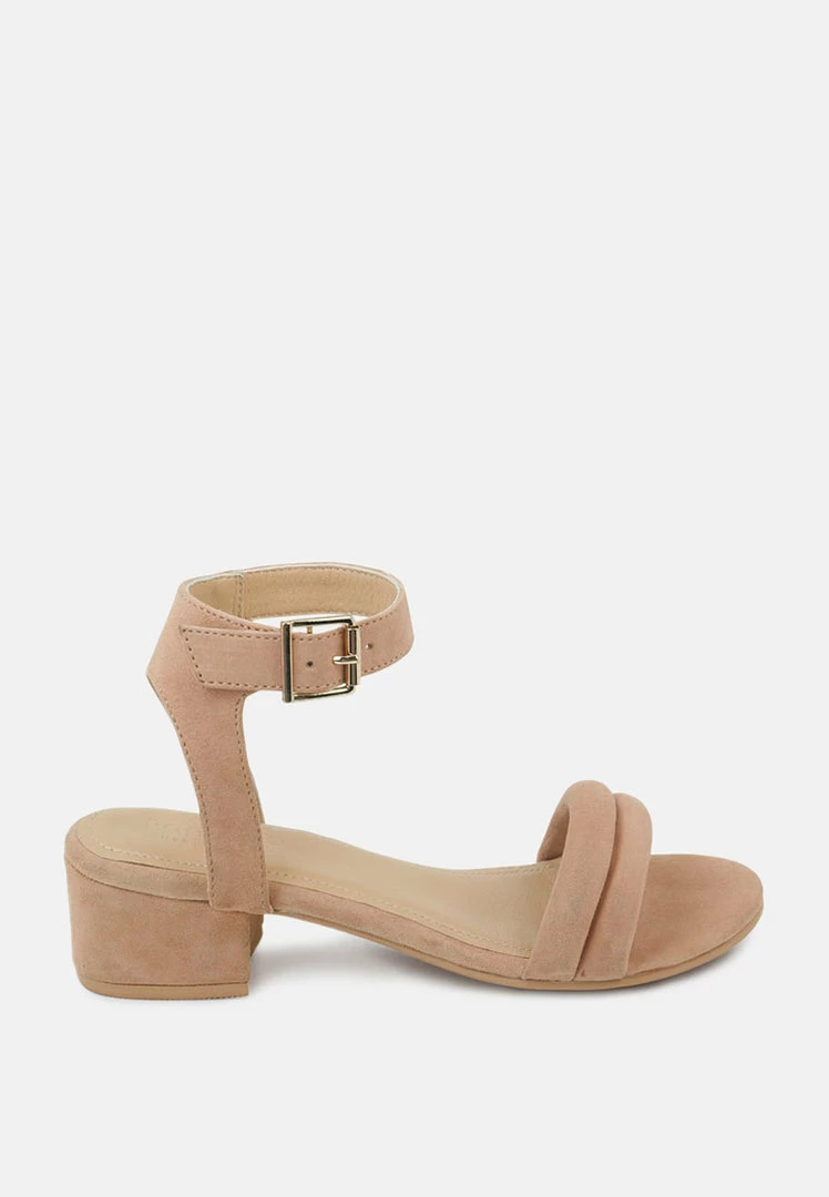 Handcrafted Minimalist Sandal in Suede Leather with Ankle Band and metal buckle fastening has a comfortable cushioned insole.