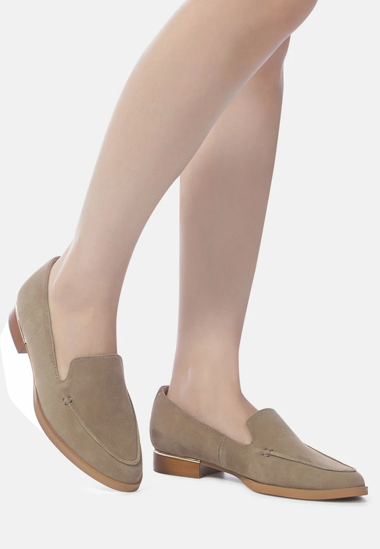 In soft Genuine Leather, this formal piece has metallic arc detail on the heel. Just the shoe you were looking to attend the next board room meeting! Looking for a no-nonsense and suave look at work? Get this pair of genuine soft suede loafers that get your feet warm and cozy. Pair it with wide-leg trousers and jackets to nail the perfect boardroom look.
