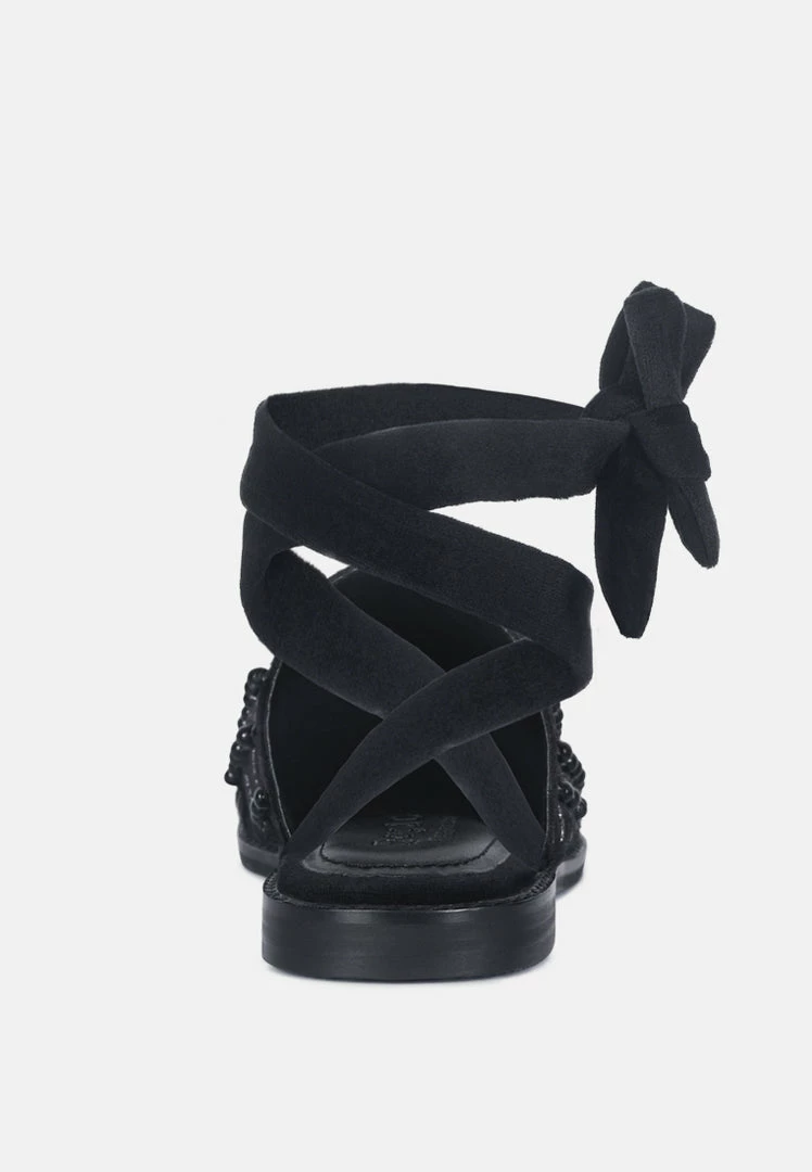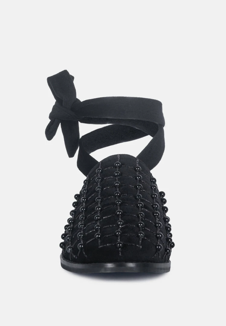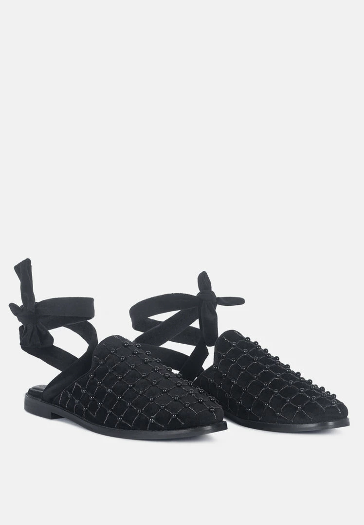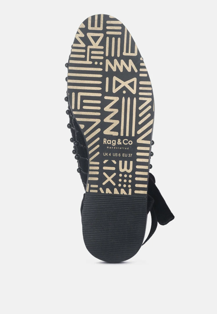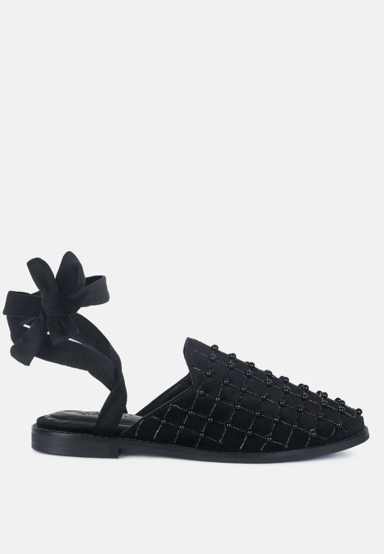 Rag & Co Asante Crisscross Beaded Veil Velvet Mules In Black Flats