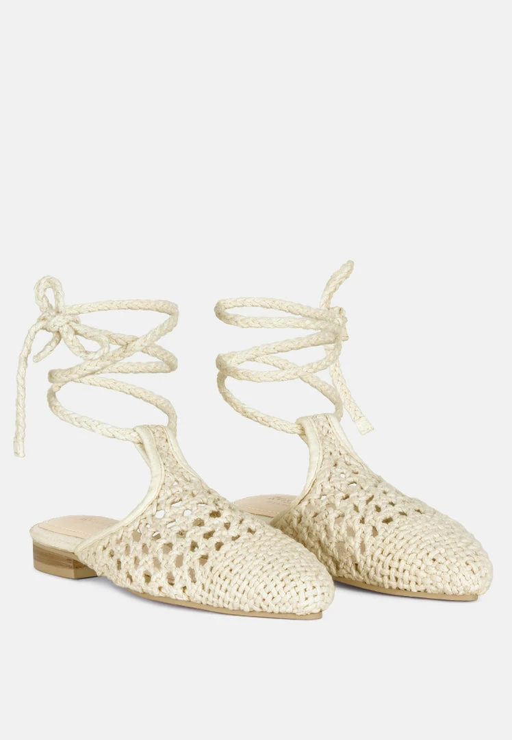 Handwoven and knitted cotton mules with foam cushioned insole is all natural, comfortable and treasured handcrafted piece. The tie up flat mule cum sandal will be your favourite go to shoe this spring and summer.