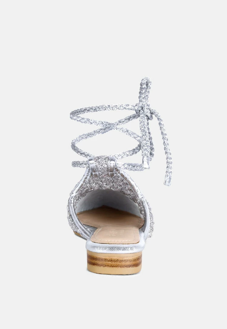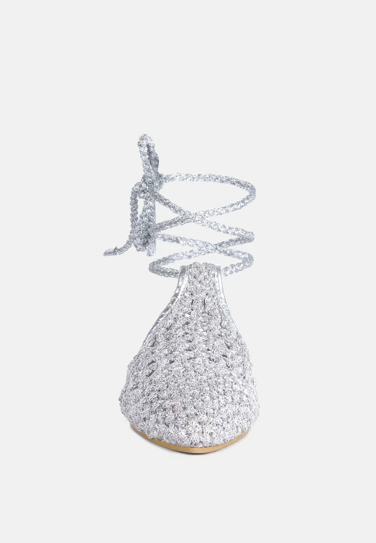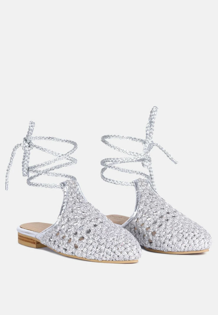 Rag & Co BARTSI Silver Handwoven Cotton Tie Up Mule Flats