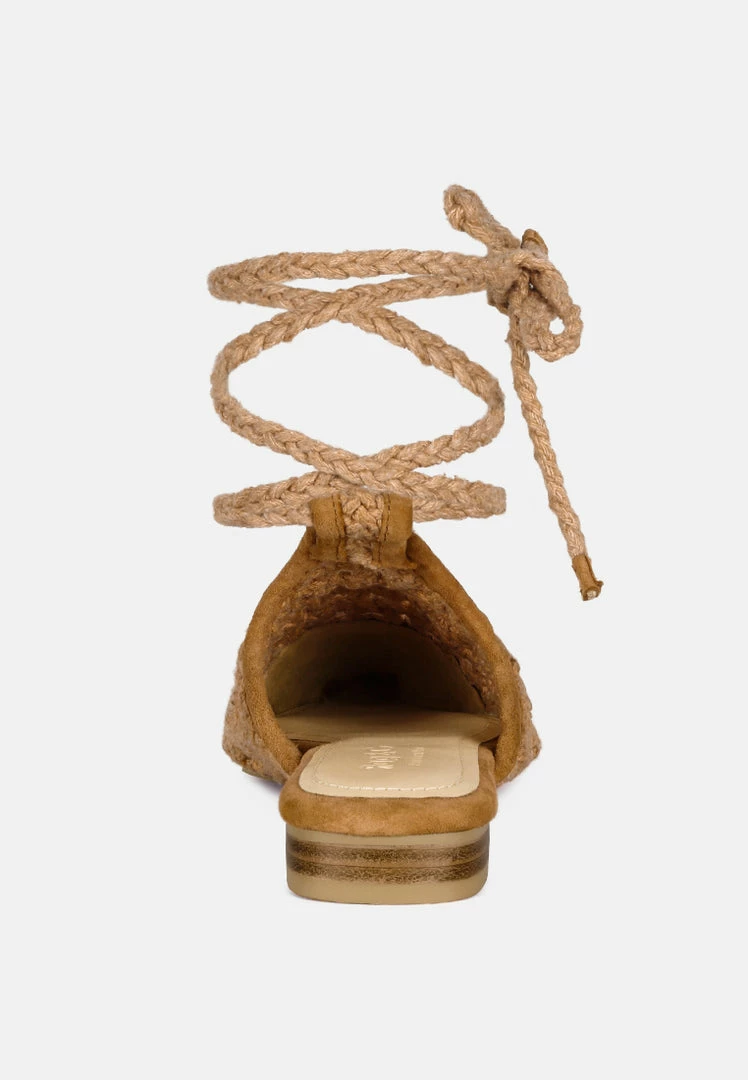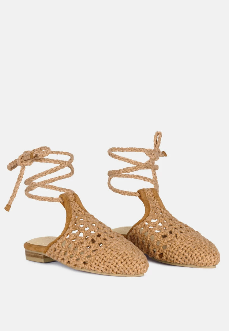 Handwoven and knitted cotton mules with foam cushioned insole is all natural, comfortable and treasured handcrafted piece. The tie up flat mule cum sandal will be your favourite go to shoe this spring and summer.