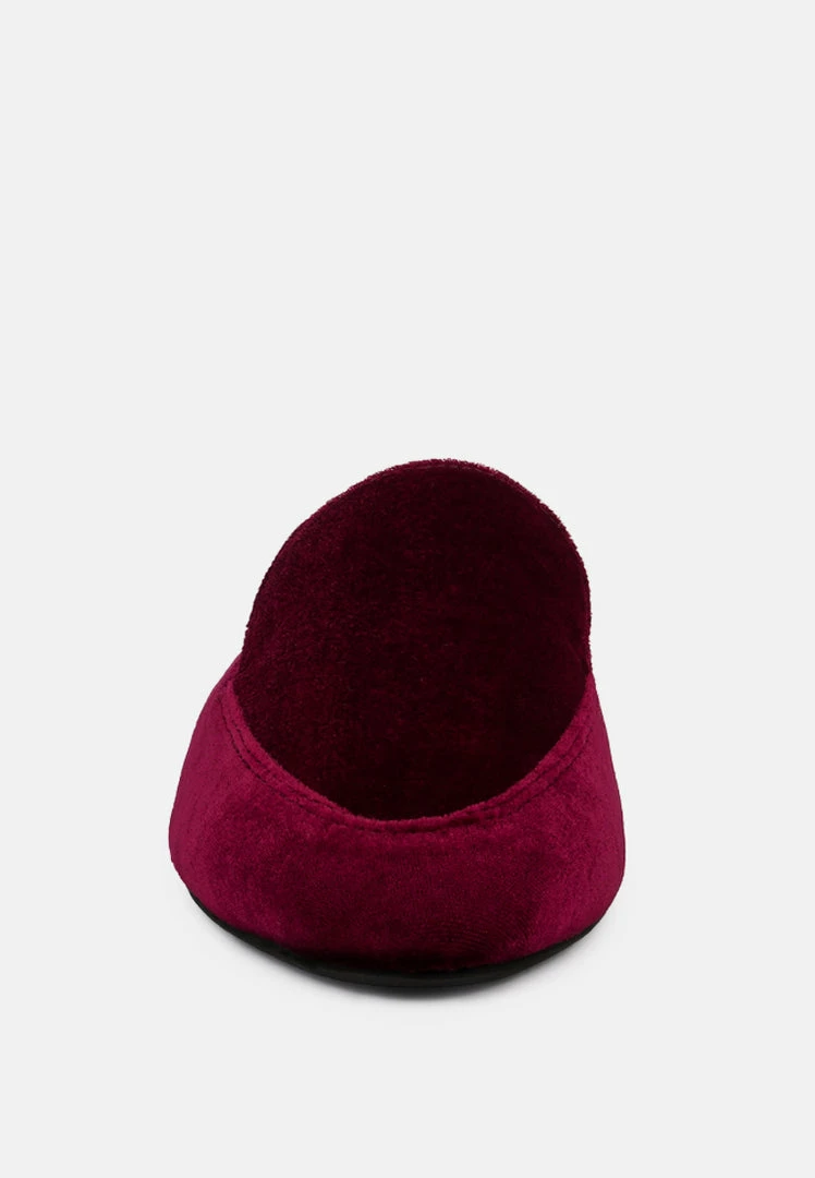 Luxurious Velvet Mules lined with organic cotton, these flats fit perfectly; breathe and most importantly soothe skin. Perfect for hot days when you would like feet sweat-free. It has a wooden heel sandwiched in processed rubber which makes it lasts long. Guilt-free fashion, here it is!