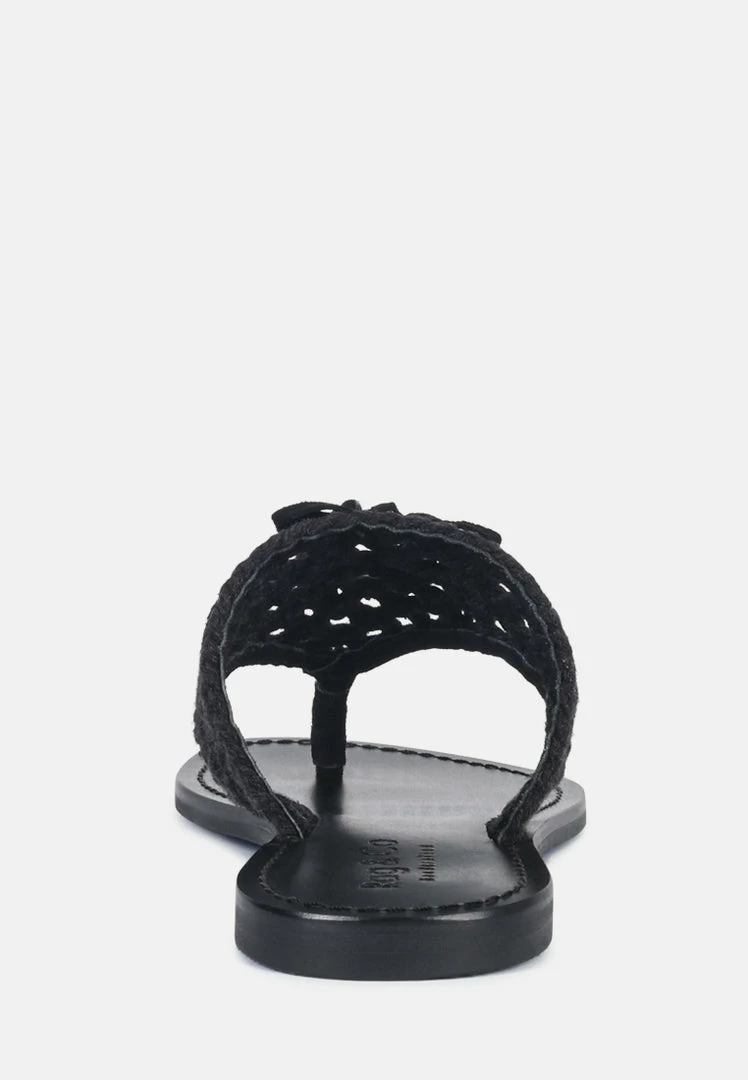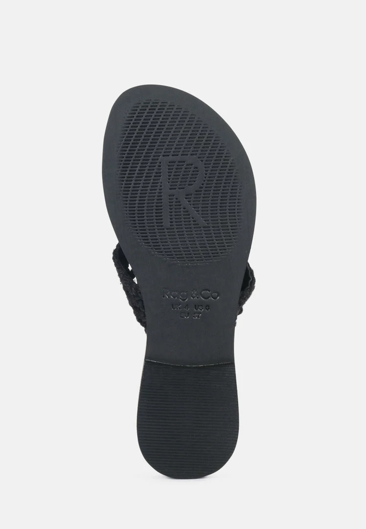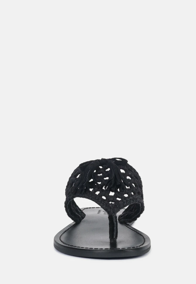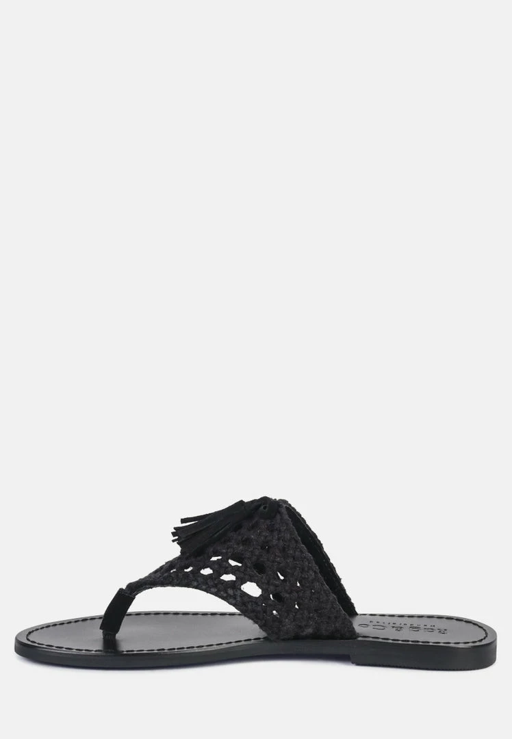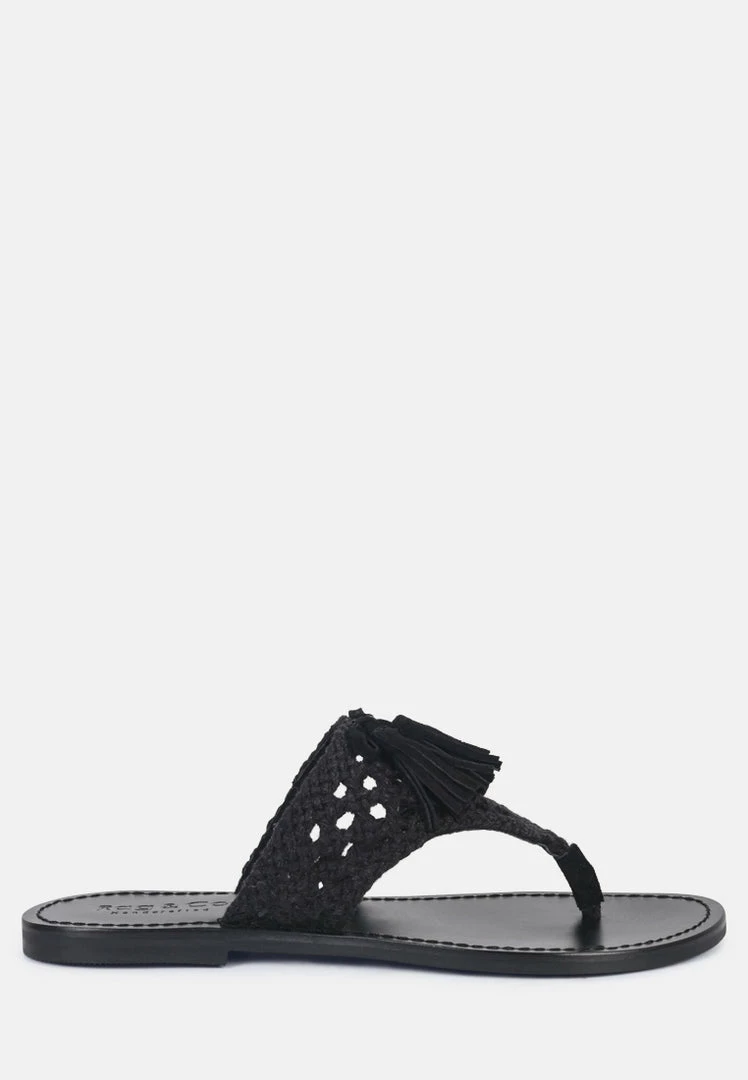 The Classic summer Thong flats with 100% Natural cotton woven structure with soft suede frame detail and the tassels at the top. The round toe open slides are casual, comfort shoes from Rag & Co.