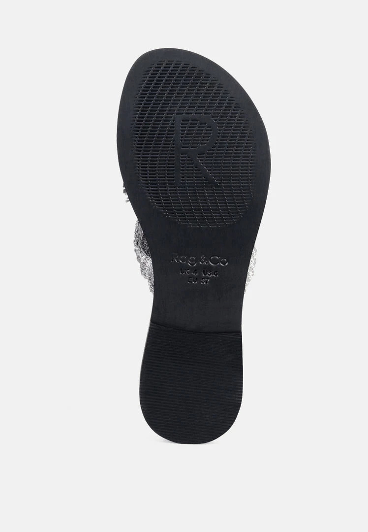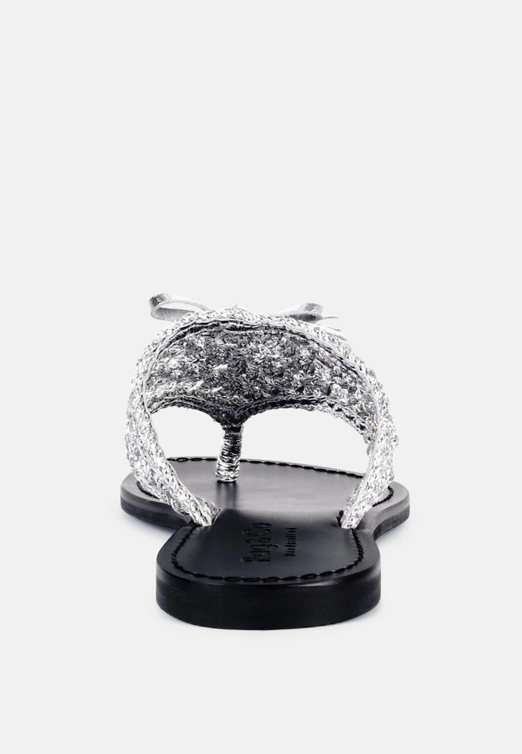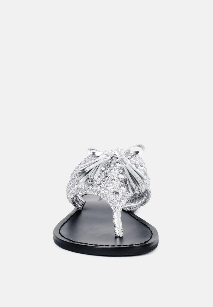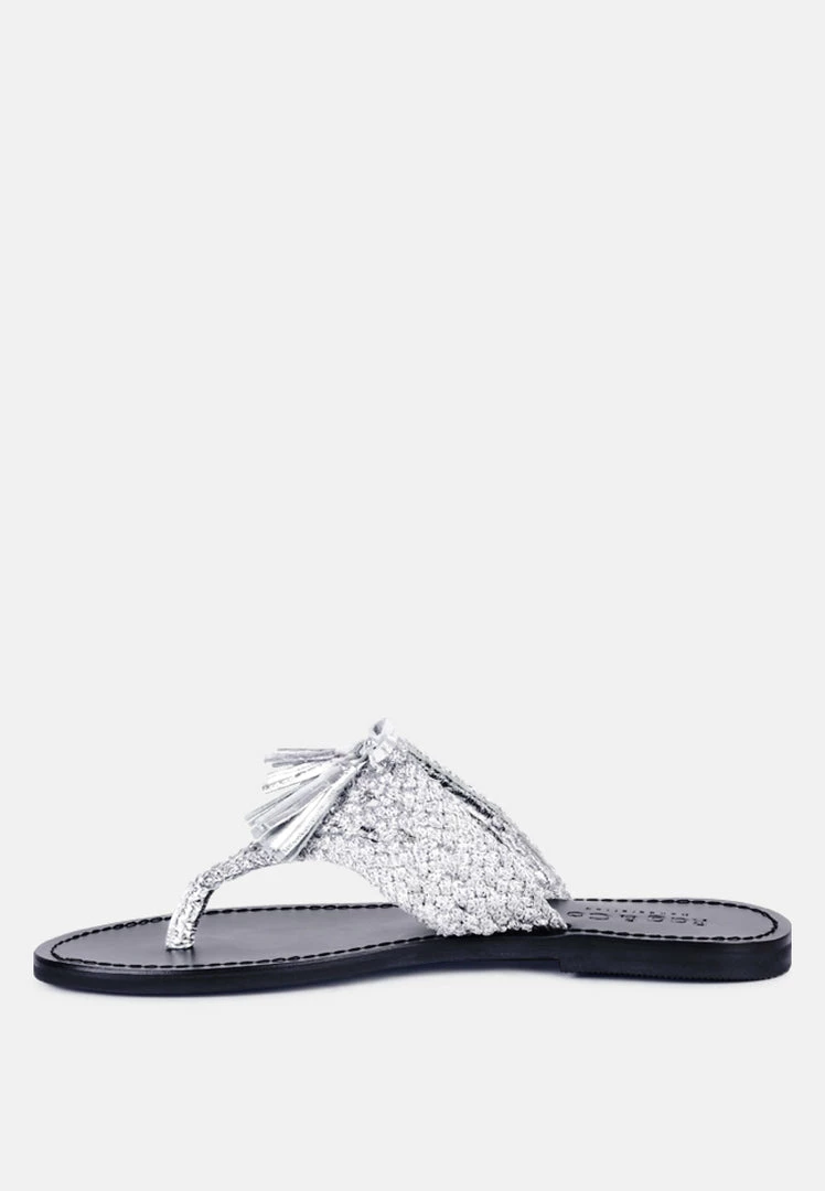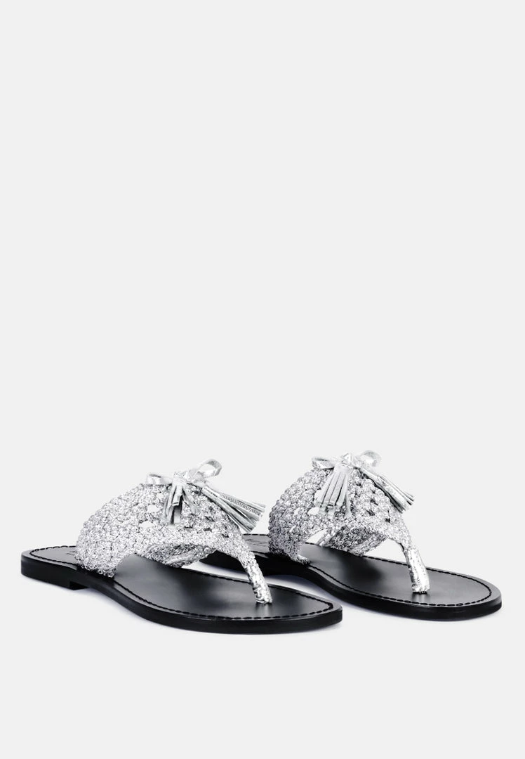 Rag & Co BEECH Handwoven Natural Silver Suede Tassel Thong Flats