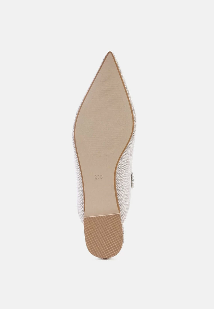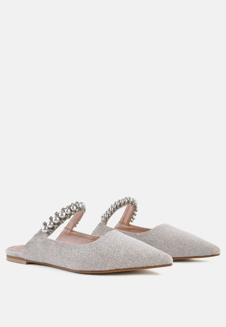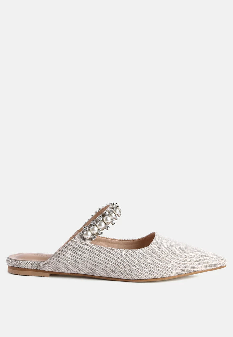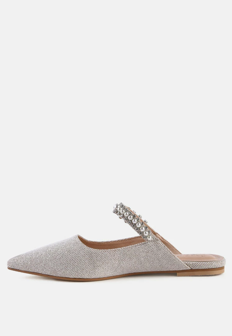 Flat mules which bring elegnace and shine to your getup – the very sophisticated pointed mules with bejewelled straps. Has cushioned insole which helps absorb shock. Keeps safe with anti slip rubber outsole.