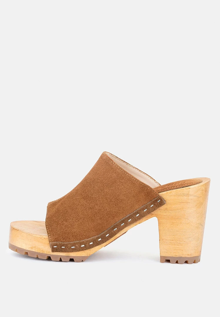 Block Heeled Suede Leather Tan Clogs – each pair handcrafted with precision and painstaking detail to fit each foot perfectly. The wooden block heel has an anti-slip durable outsole that keeps you protected on all surfaces. Superbly stylish, available in limited quantities with ethically sourced fine leather suede.