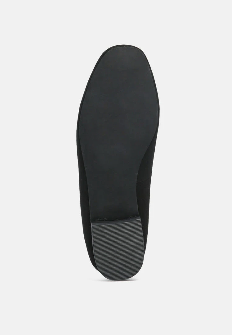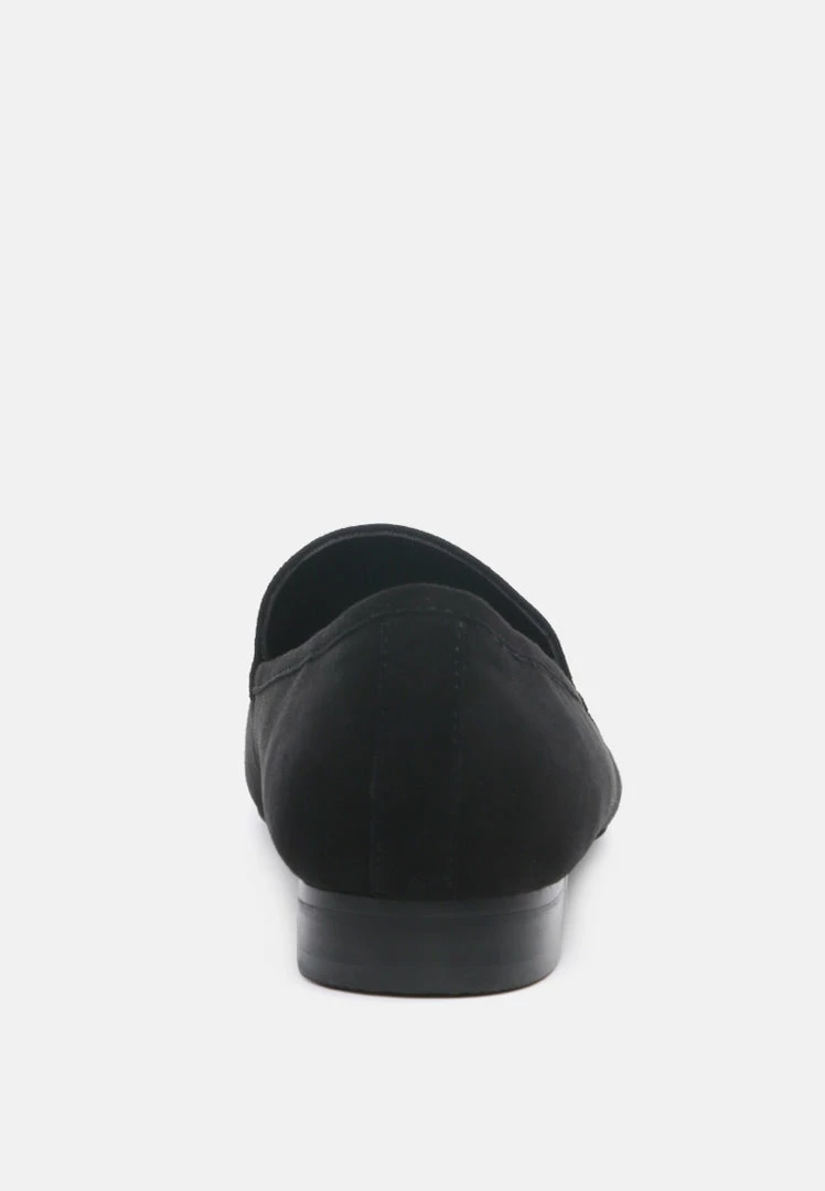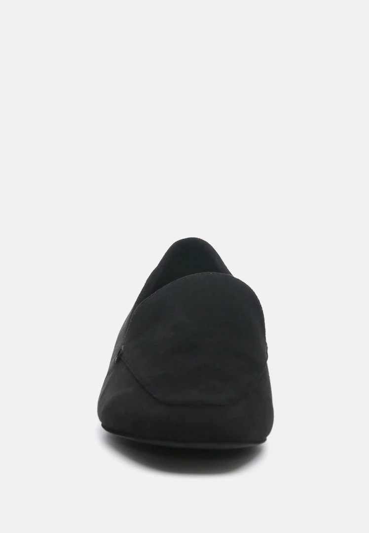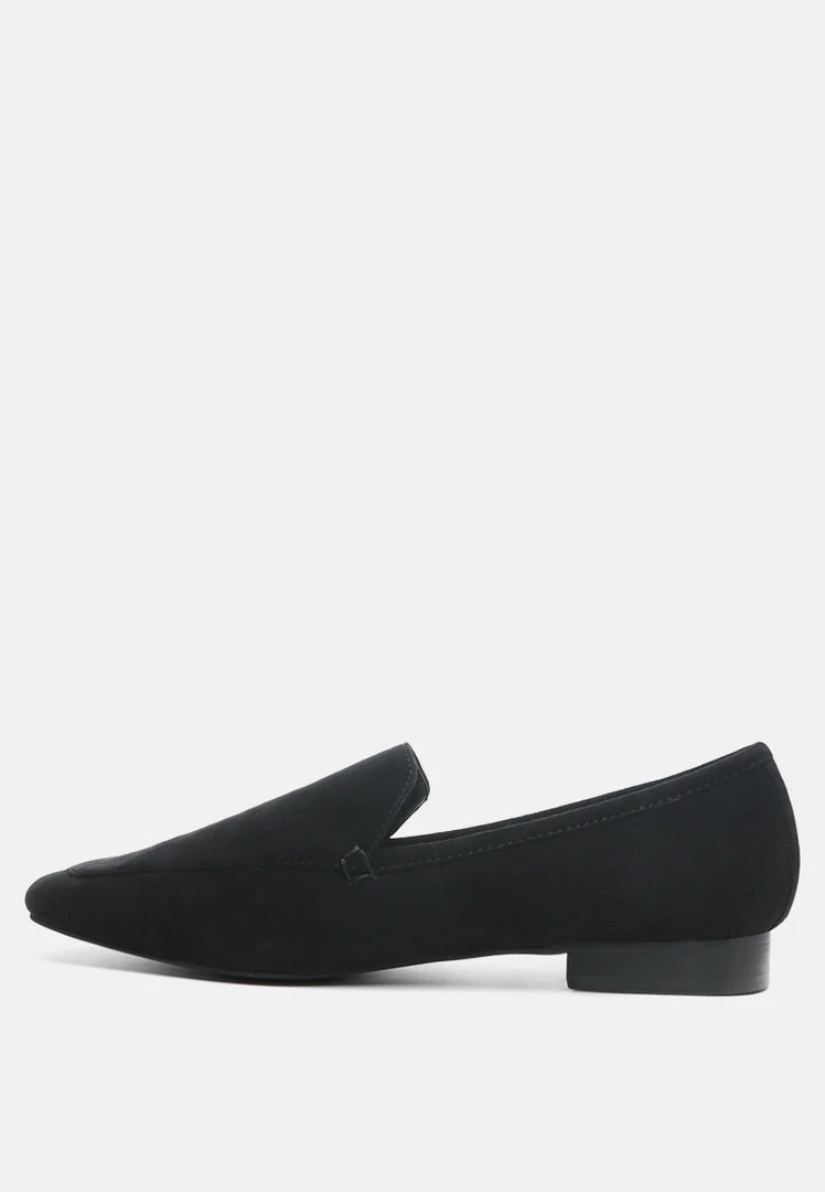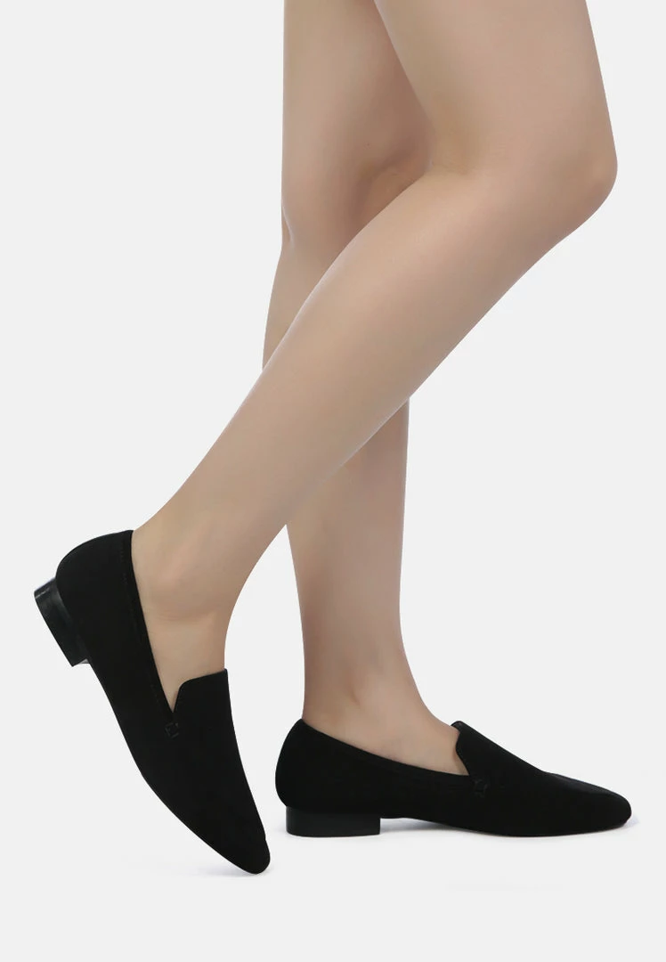 Sharp and classic: The genuine Suede slip-on is for a chiseled feminine work look. You can get it over semi-casual basics and blazers too!