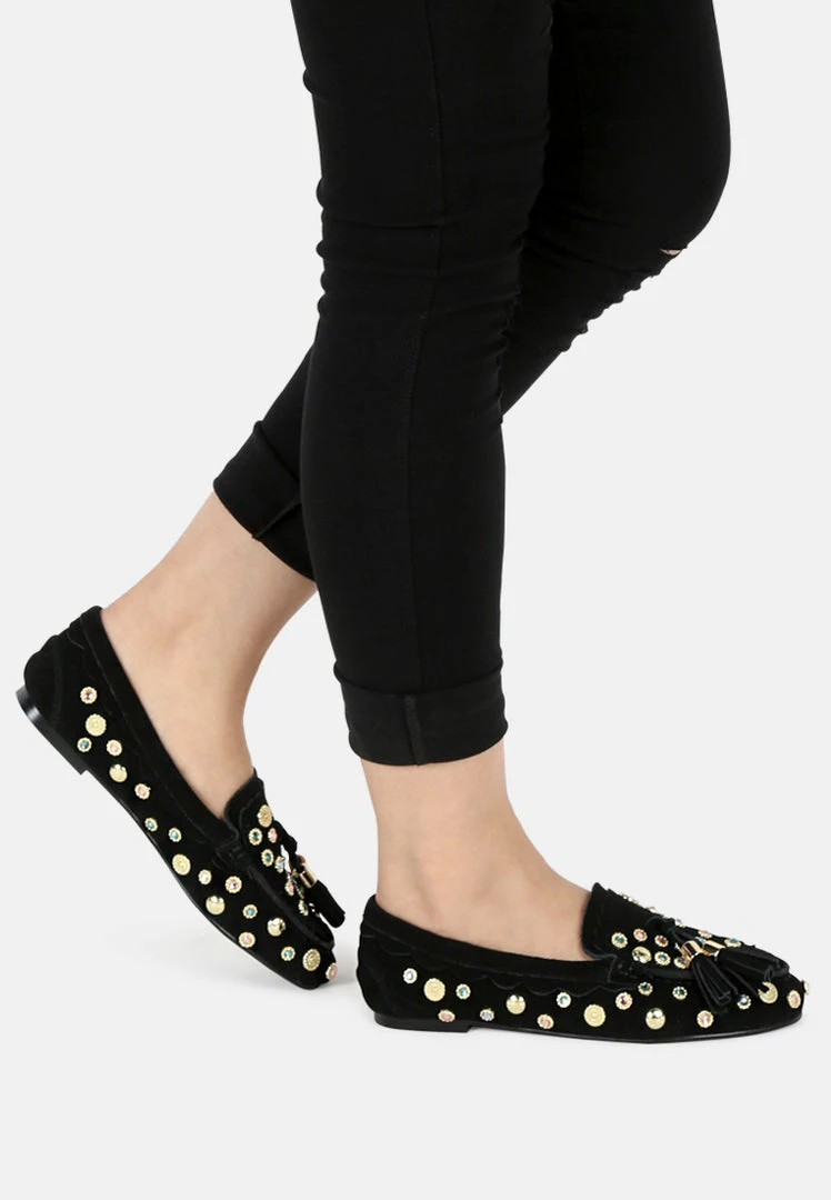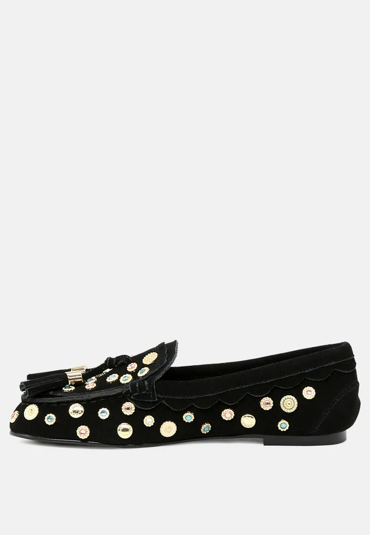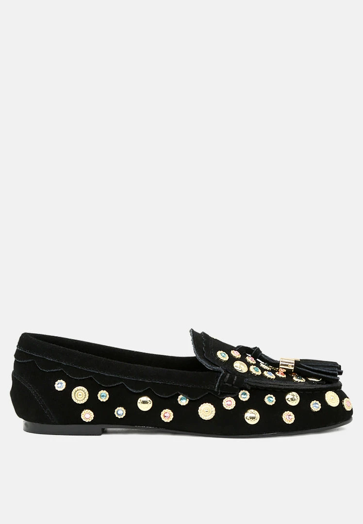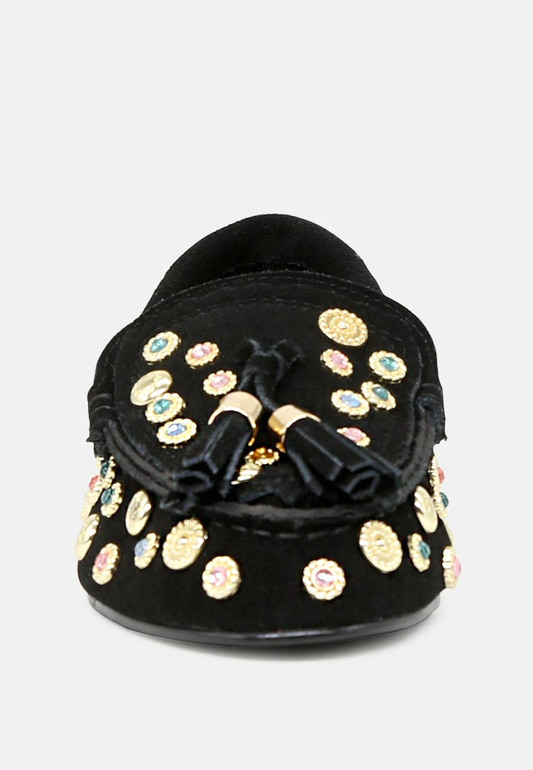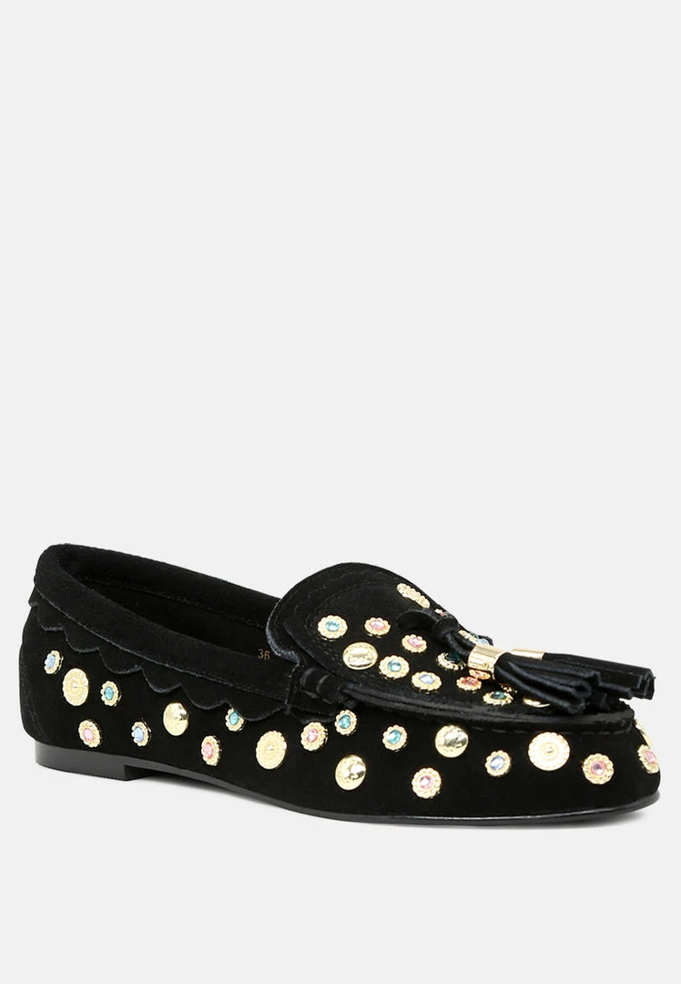 - Round Toe loafers, Easy To Slip On, Metallic stud, Tassels, Comfortable soft insole and durable out-sole.