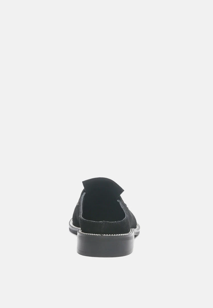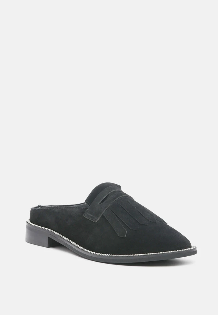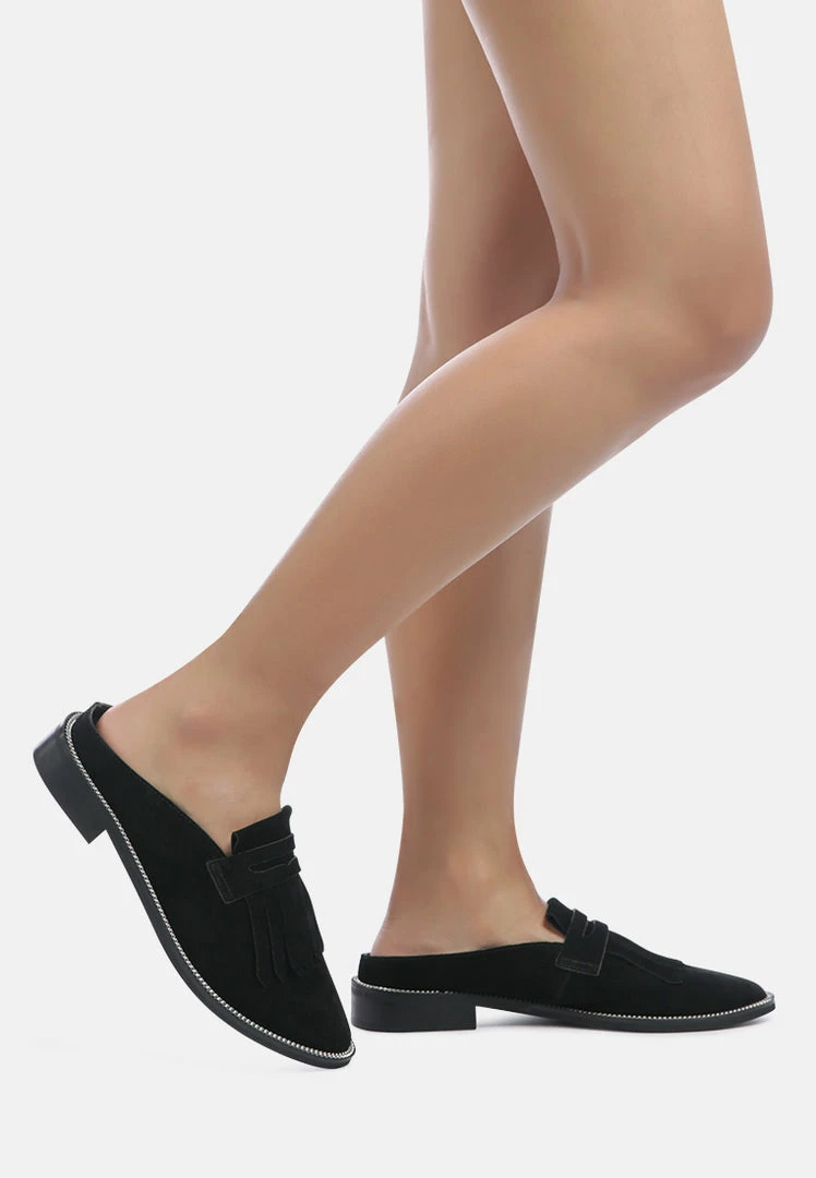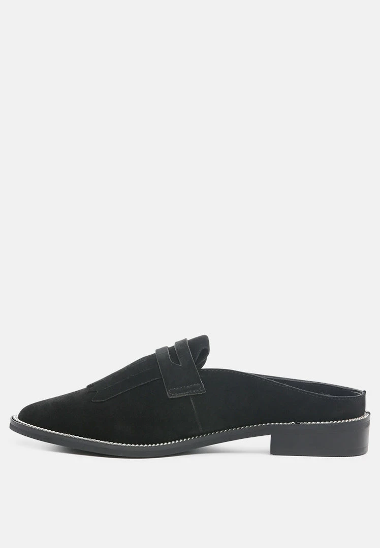 The Suave Black mule in genuine suede is an ideal addition to your 9 to 5 and beyond look. A very comfortable pick with smooth leather construction, gilded insole with support, and gripping German sole that supports. From the day at work to an evening walk by the home, be comfortable and at ease with this pair of genuine leather Mule. Soothes tired feet and is all delight with the premium handmade aesthetic.