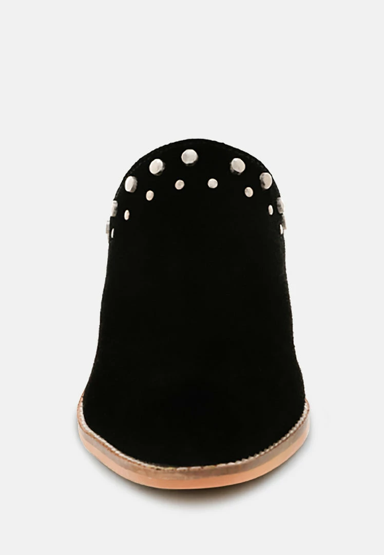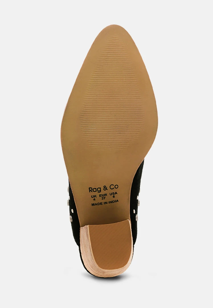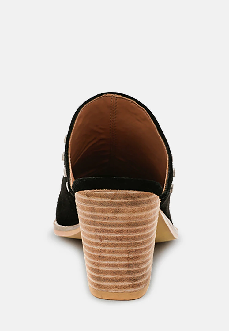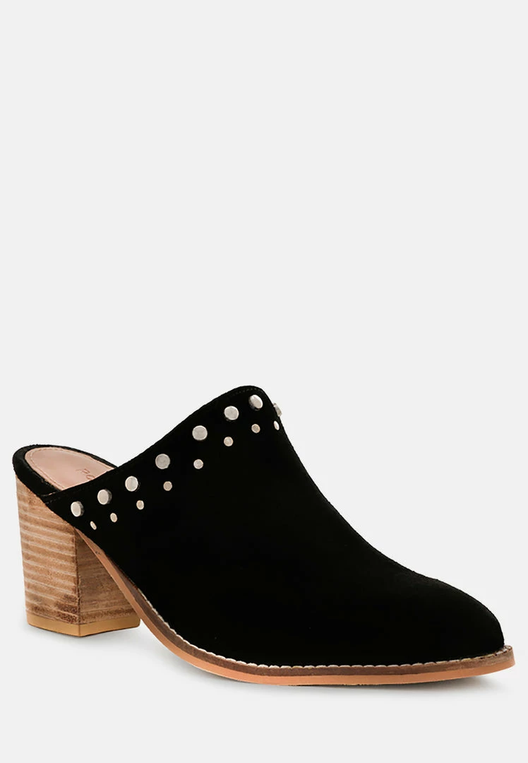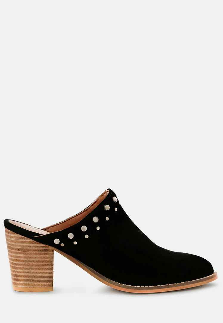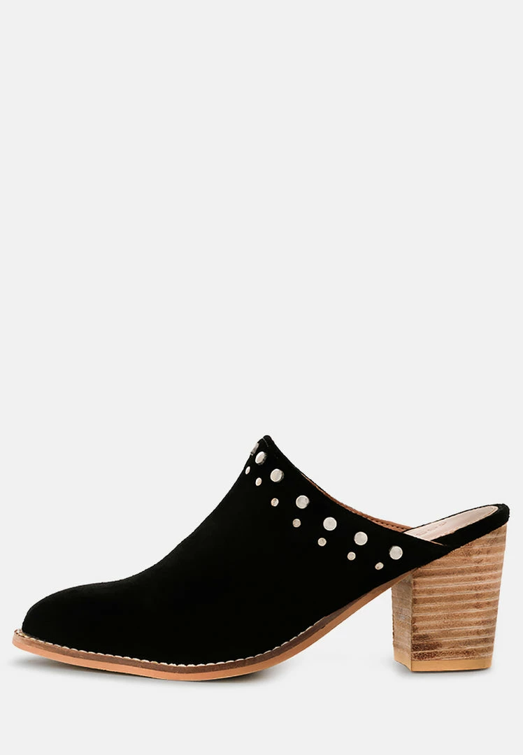 Stepping out in style has a new definition with this pair of mules. Featuring stylish studs & stacked heels which enhance its look, while its material will make you feel comfortable all day long.