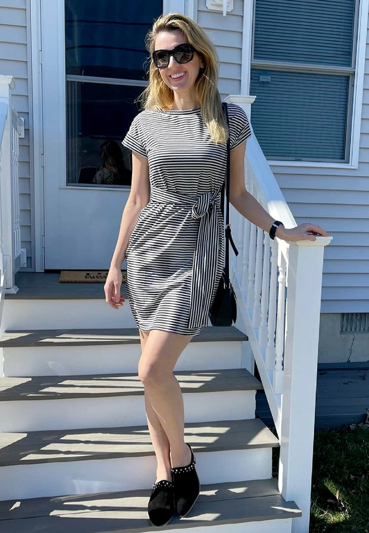 Style Tip: Stacked heeled mules look great with palazzo & off shoulder top.