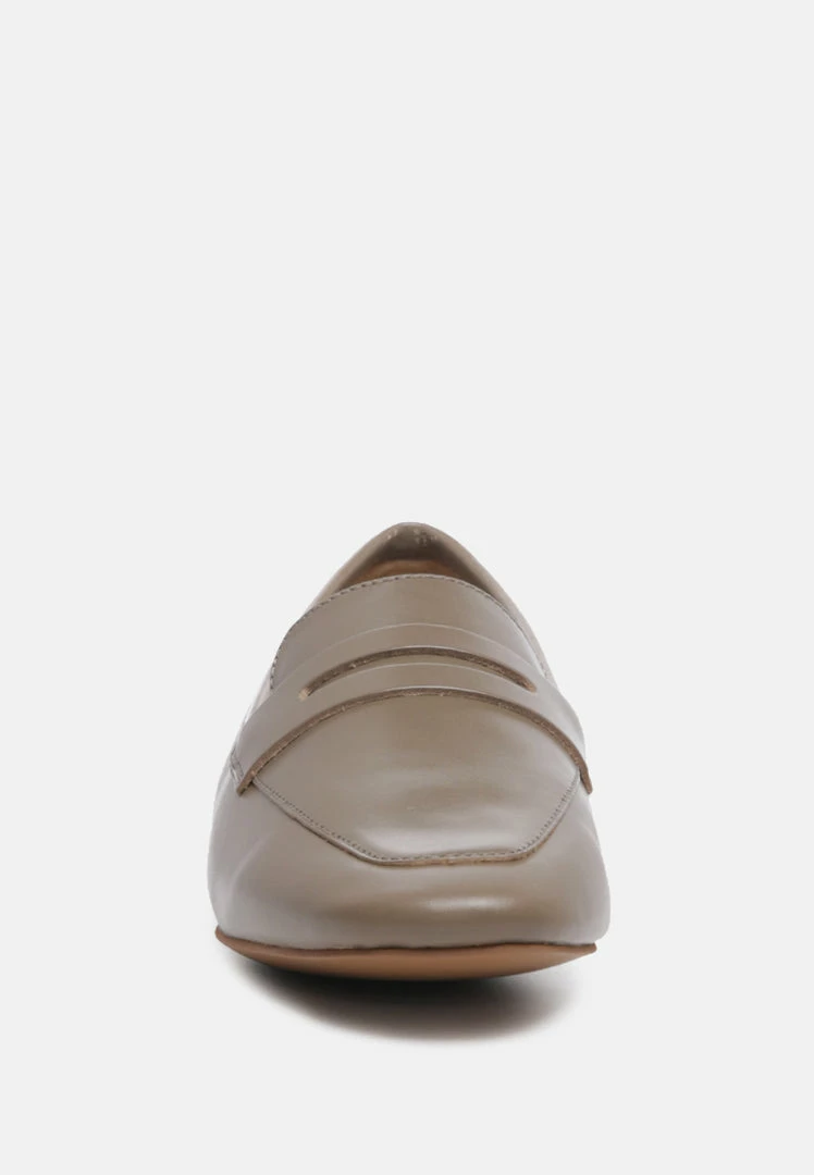 Classic Slip-on with raise flat heel in genuine leather and handcrafted fit. Perfectly fits the feet and keeps it sleek and formal, available in two colors: Black and Taupe. In soft genuine leather, this natural slip-on will be your favourite piece of work wear. Style it with everyday formals and look upbeat!