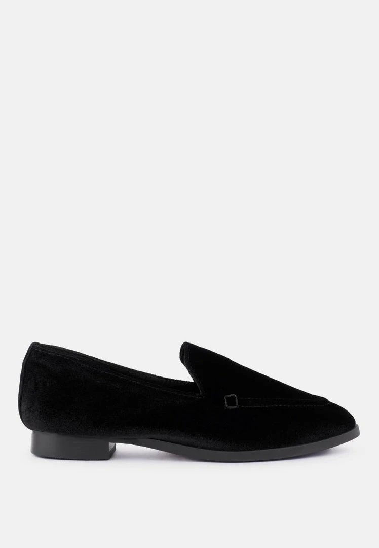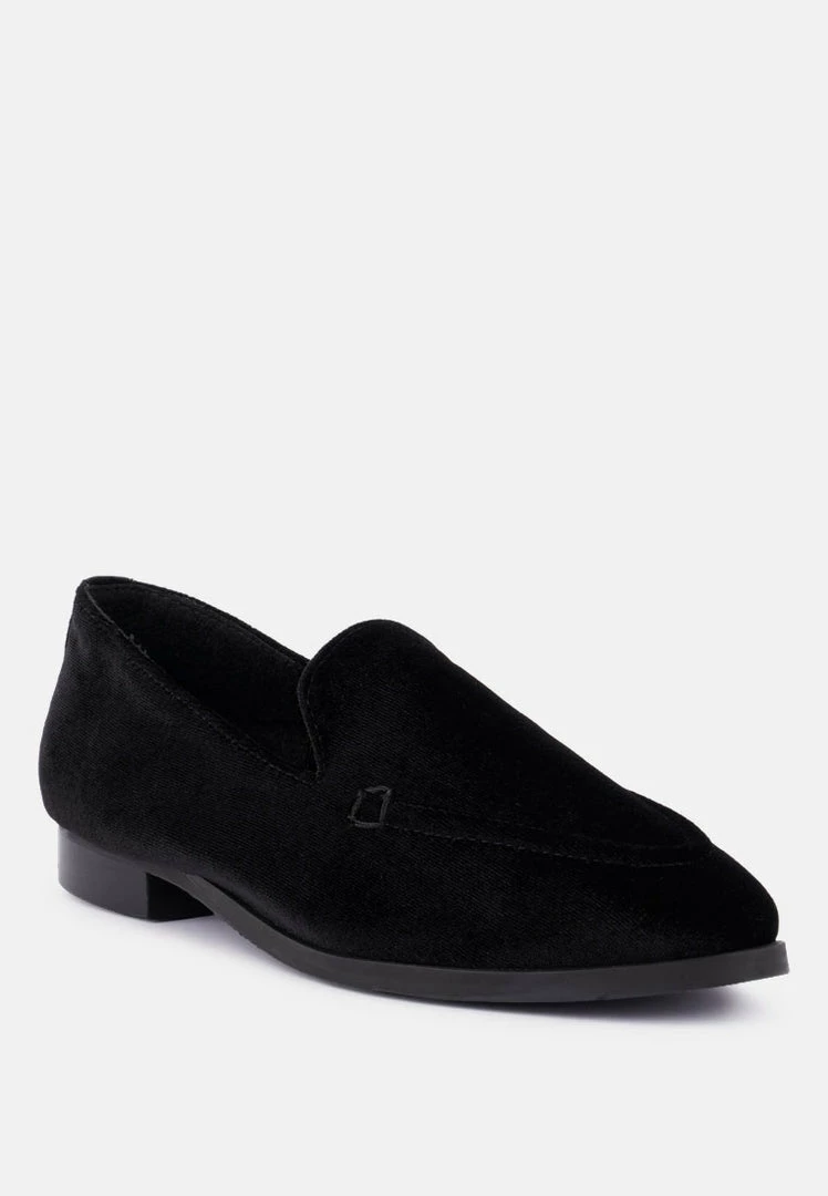 Rag & Co LUXE-LAP Black Velvet Handcrafted Loafers Loafers & Ballerinas