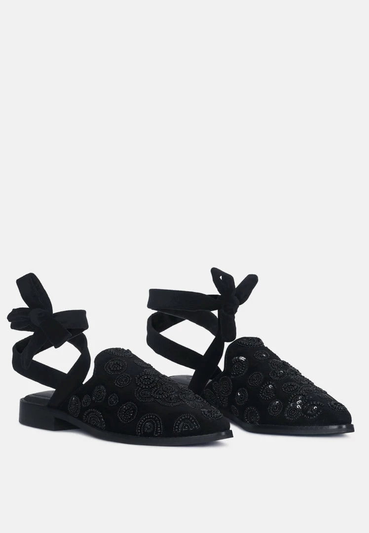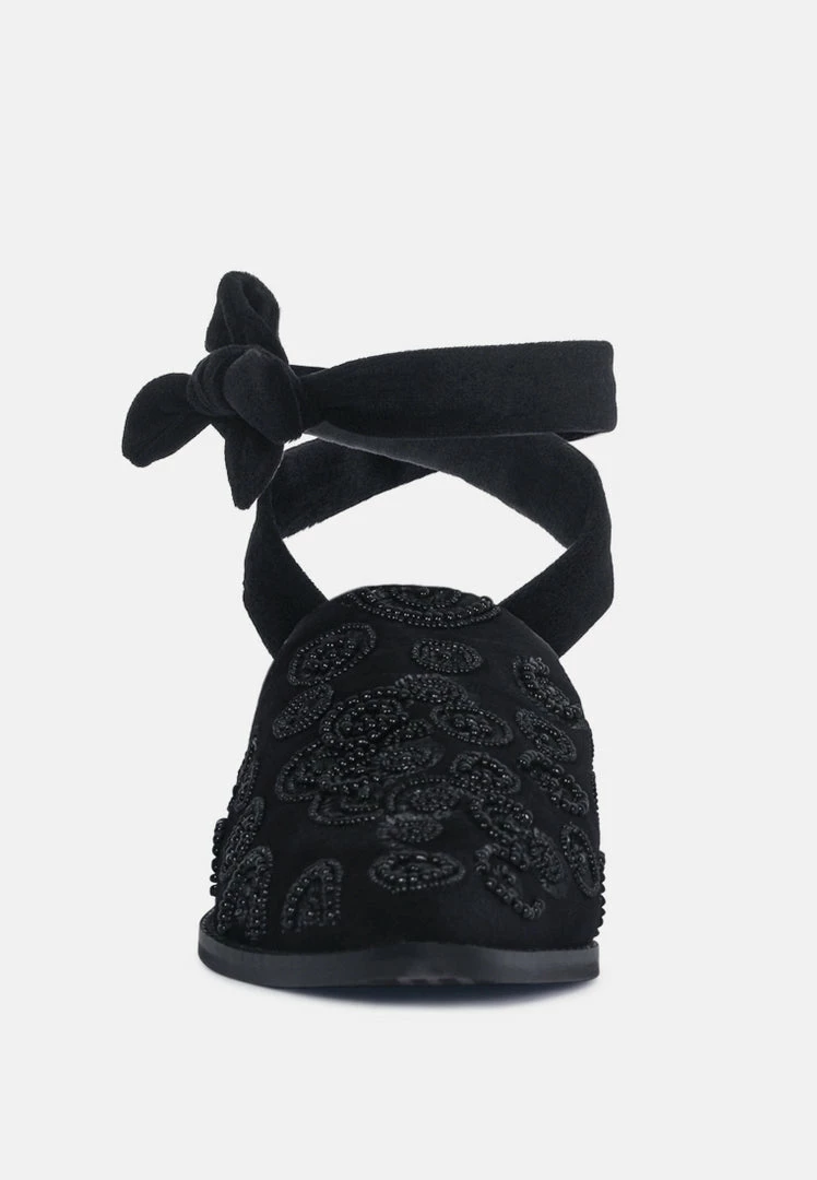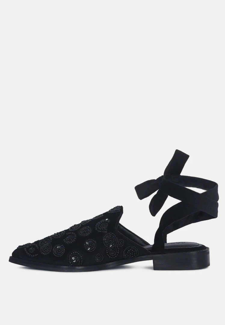 Rag & Co Mande Embroidered Velvet Mules In Black Flats