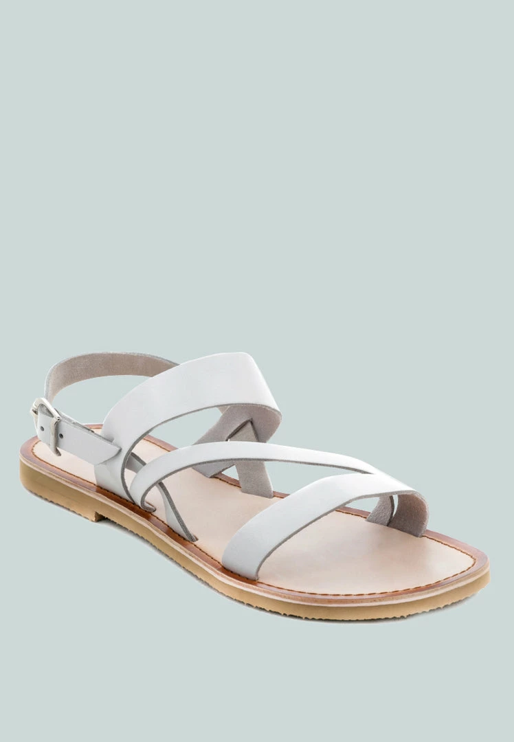 Rag & Co MONA White Flat Sandal With Ankle Strap