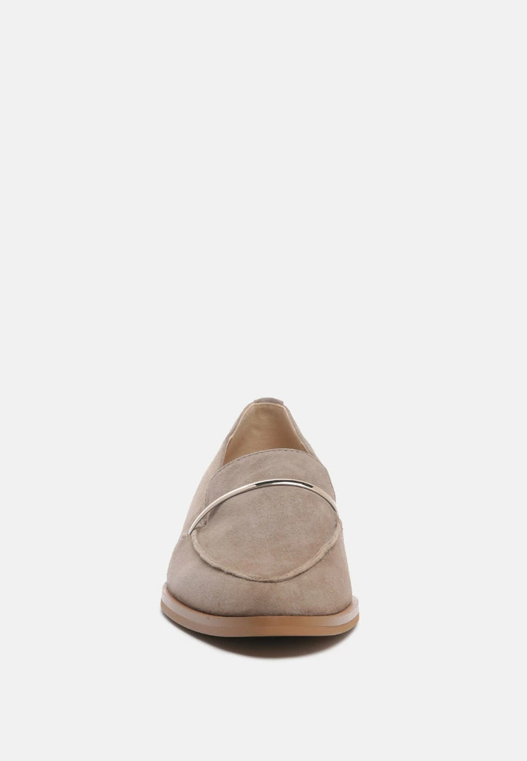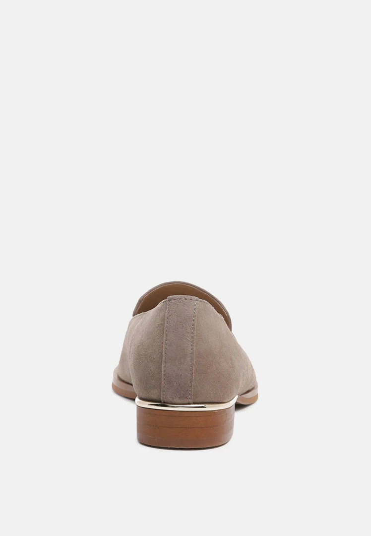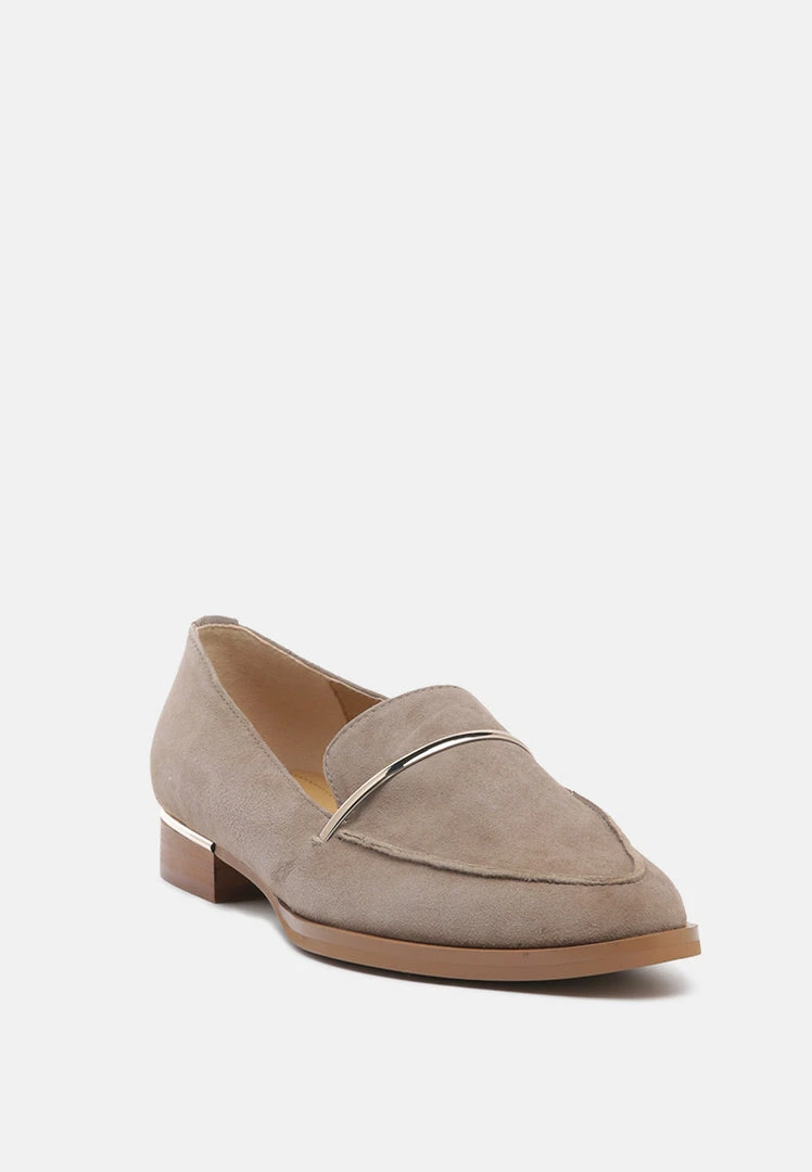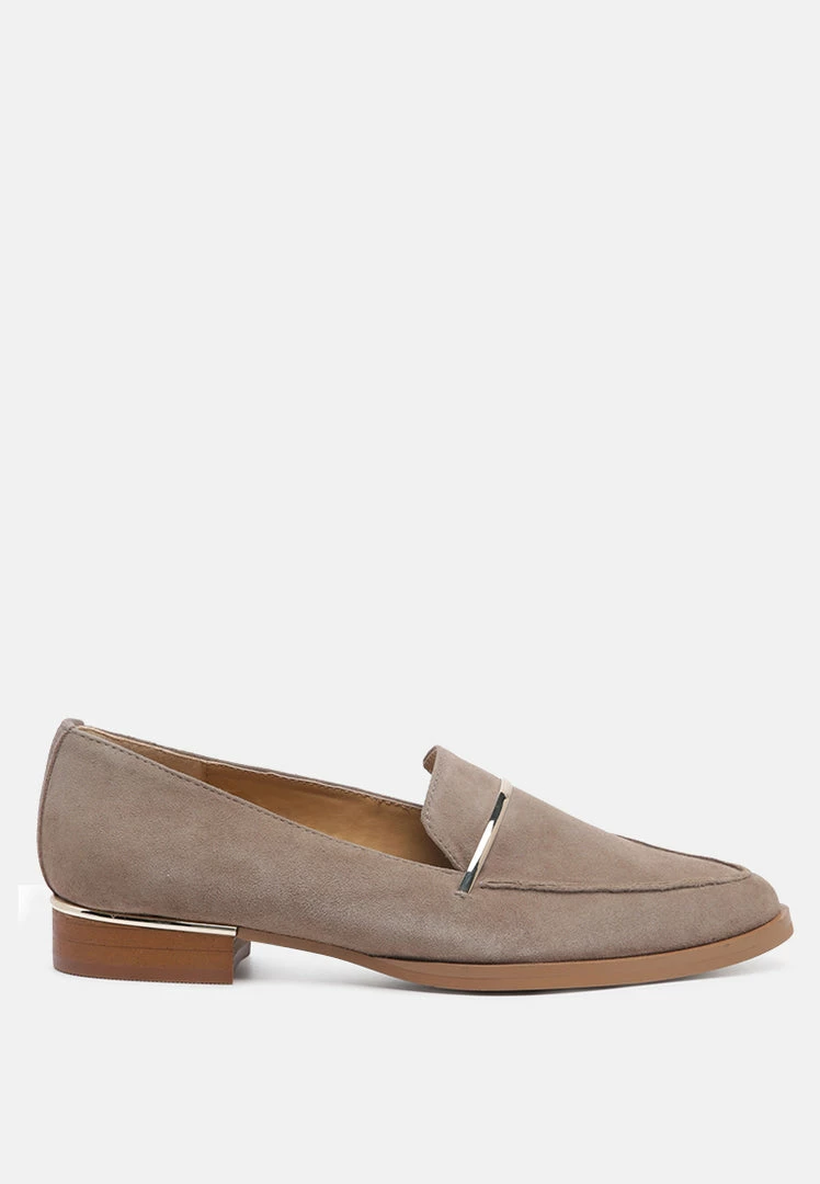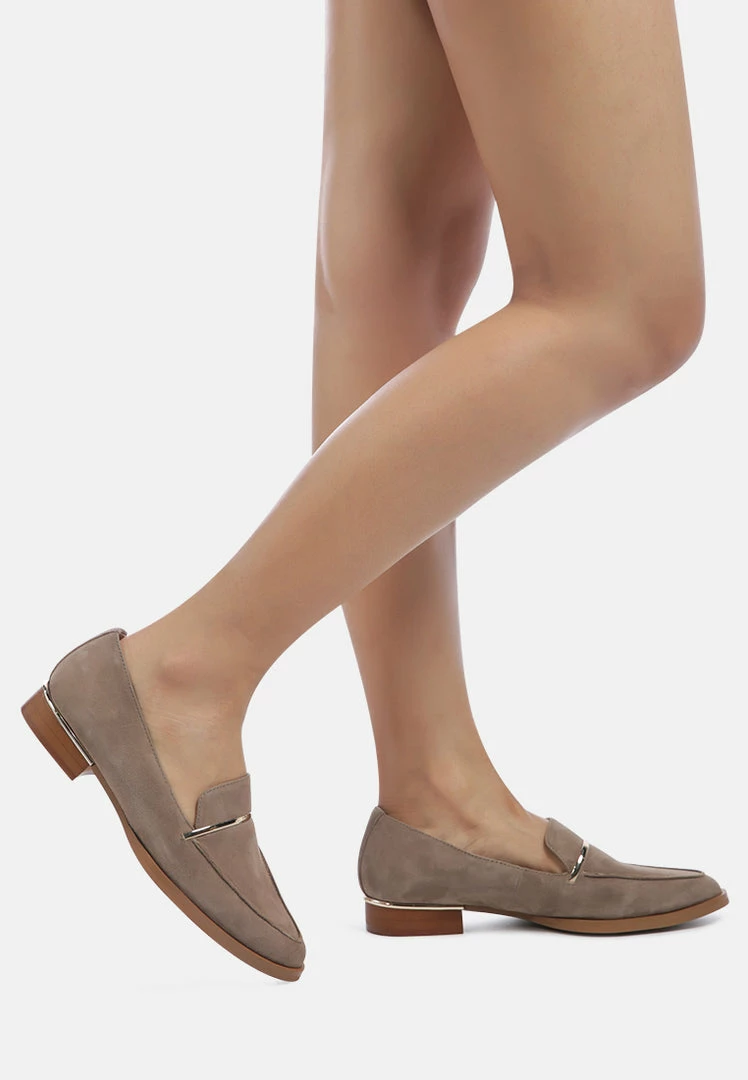 Metallic detail, genuine Suede slip-on. Easy on feet, breathable, and smell free. Keeps feet relaxed throughout the day when you have great plans to explore.