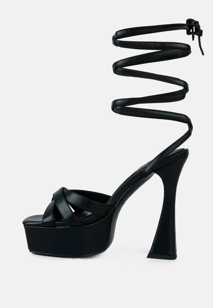 Stylish raised platform High Platform Heeled Lace Up Sandal – handcrafted in great finish and superb construction, this sandal comes is made in plush fine leatherette which is soft to skin. The sandal has soft cushioning which cuts strain.