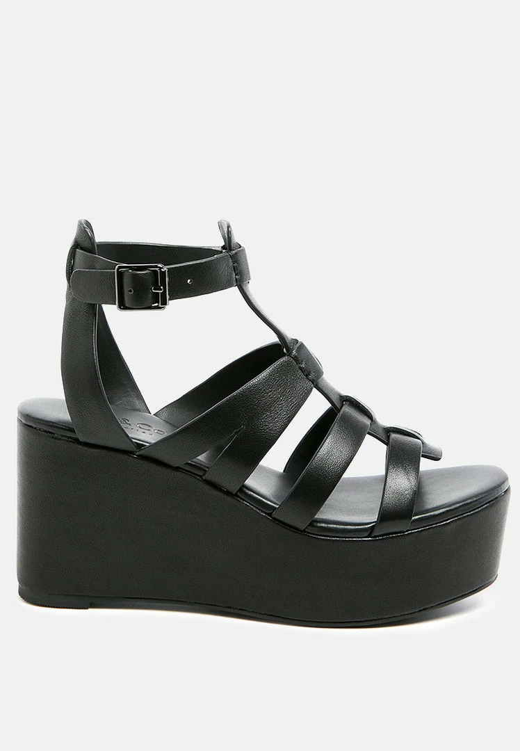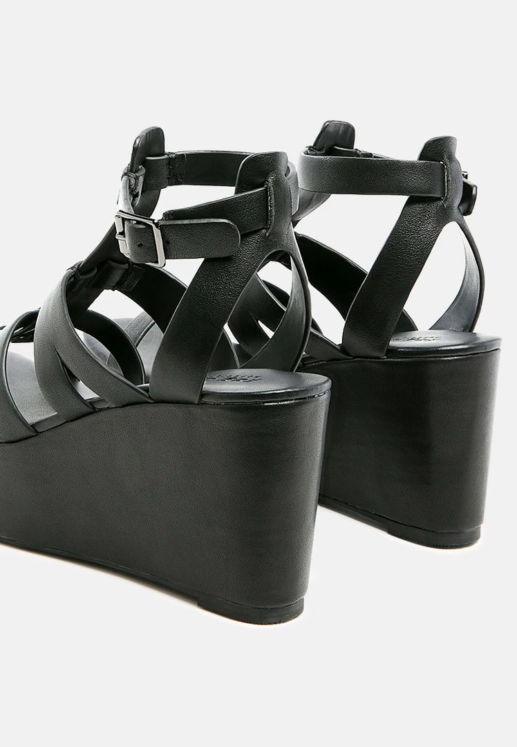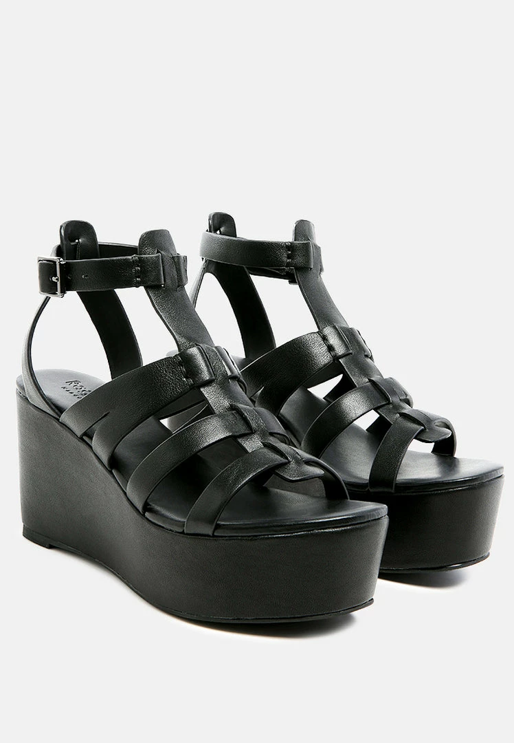 Gladiator-style cage wedge sandals in leather with pin-buckle fastening. Comes in two colors – the leather sandal will be definitely your go-to shoe for this time.