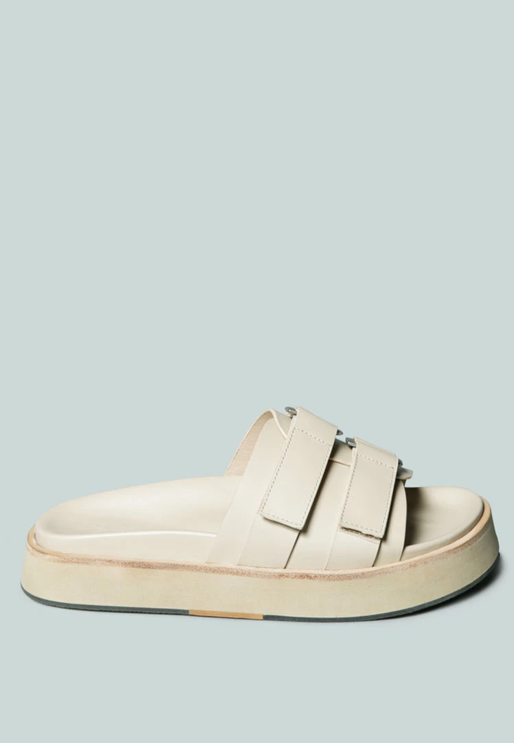 Nude Buckled Slip-On Sandal, with Velcro trims. The soft footbed grips the feet well and relaxes. Stay ahead with ANISTON in your casual wardrobe. The quintessential luxury – get one for the times you want to ‘slip-on’ into rest, for the fashion innovators and leaders.