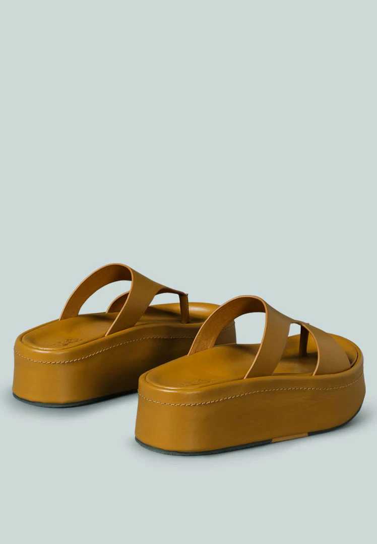 Solid slip-on Leather Platform Sandal upon molded platform base which settles feet well is a summer stunner. The casual sandal is all comfortable, stylish crafted with super-soft luxury leather over durable man-made sole is a favorite go-to shoe.