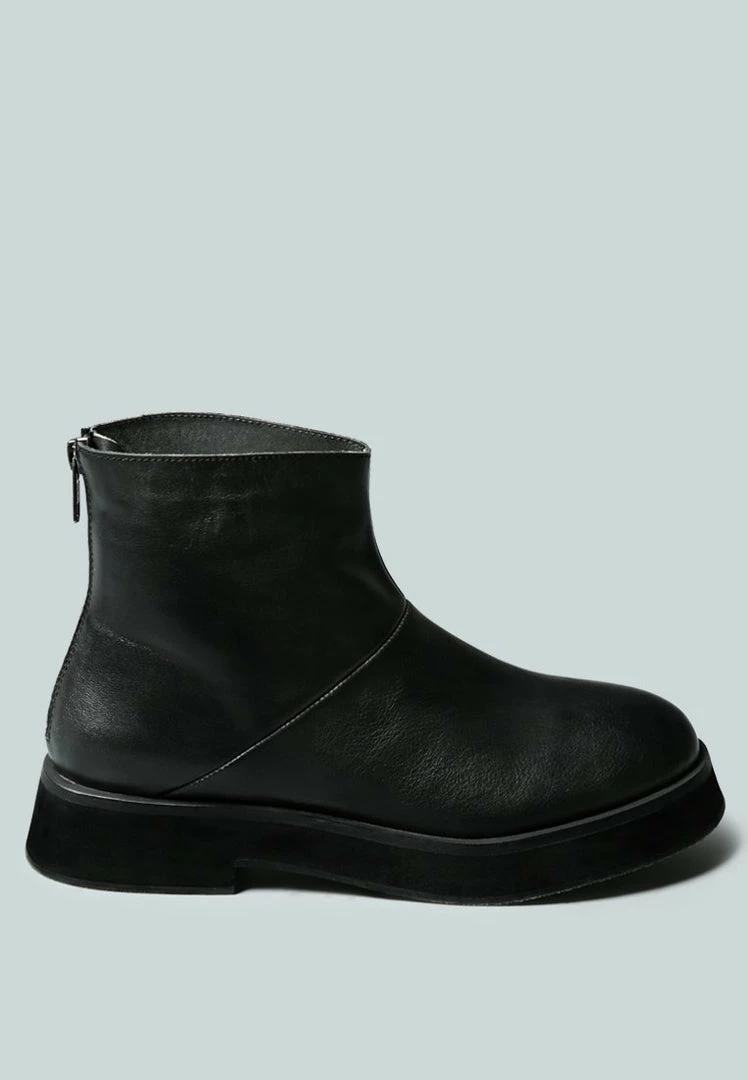 Black Ankle Boot with classic Hand Stitched Welt– giving both flexibility and strength to the shoe body. The back zipper opening makes it easy to wear and fits well. With a minimalist design and smooth finish – this one is for keeps! Smart and Sleek structured silhouette, PALTROW Ankle Boot is crafted from 100% fine leather and features a comfortable outsole that promises effortless style along with practical comfort.