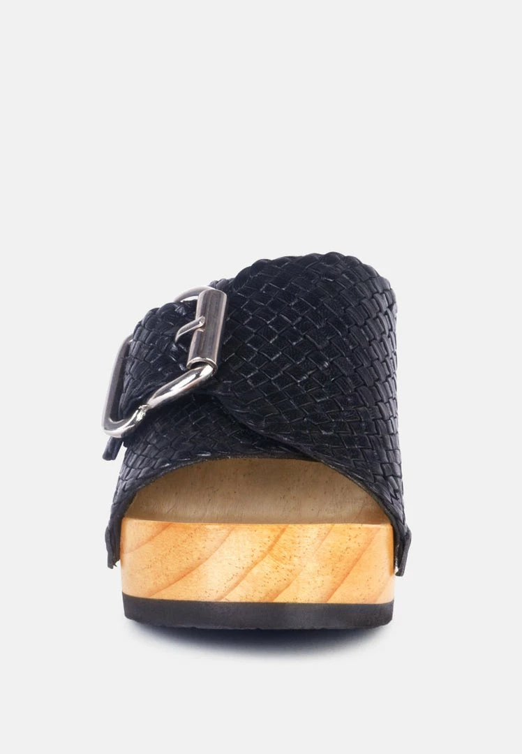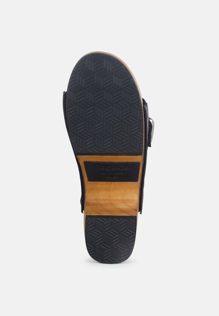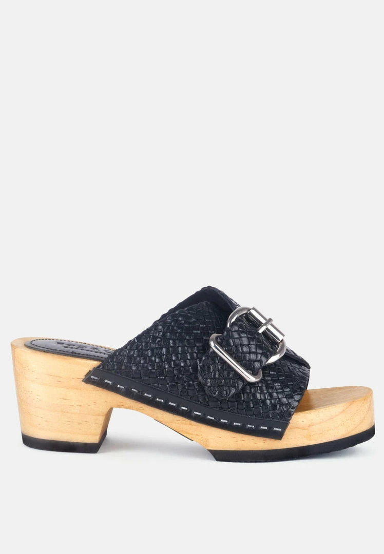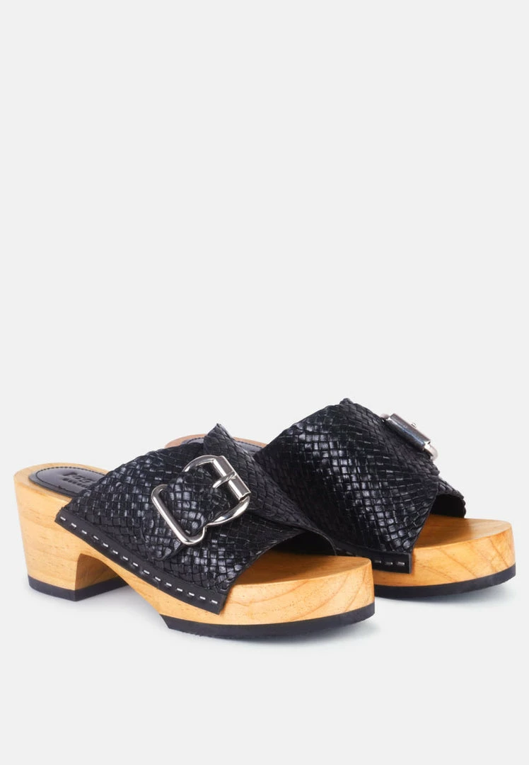 Rag & Co YORUBA Braided Black Leather Buckled Slide Clogs