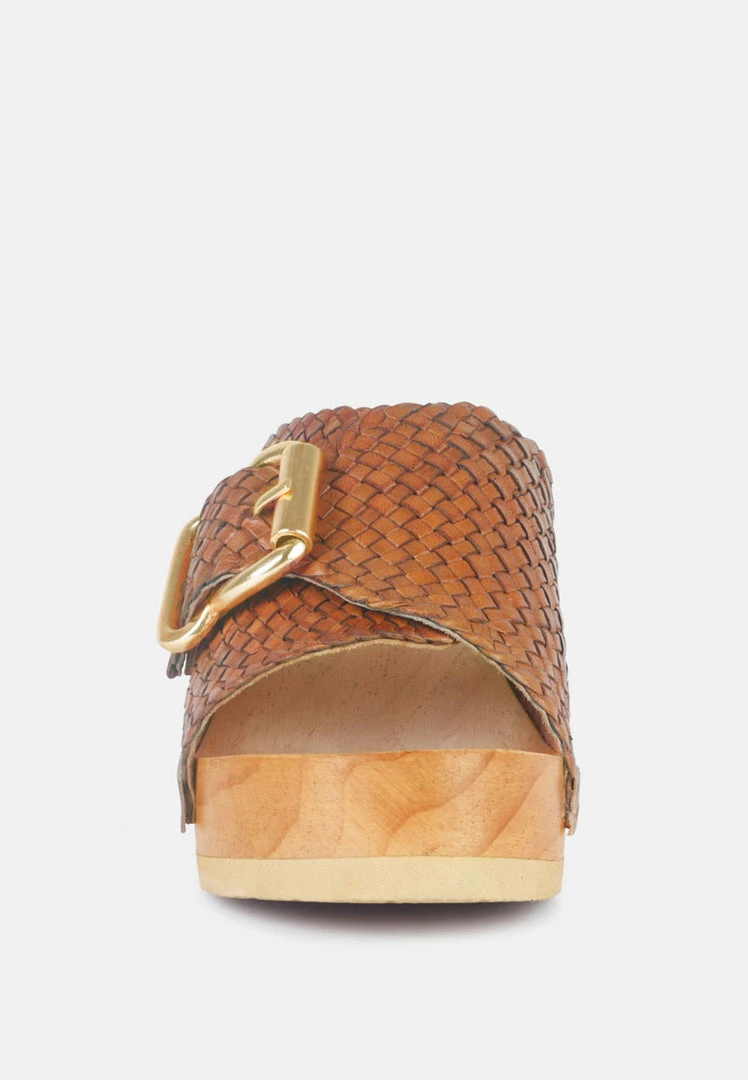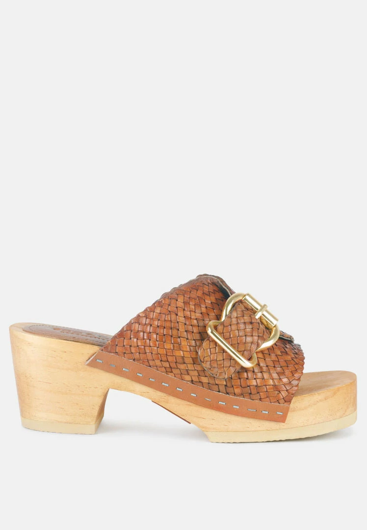 Inspired from traditional African Art and Textiles – the YORUBA Wooden Clog sandal is made up of braided leather. The high-quality shiny metal buckle adds to the look and also custom fits according to the width of your feet.