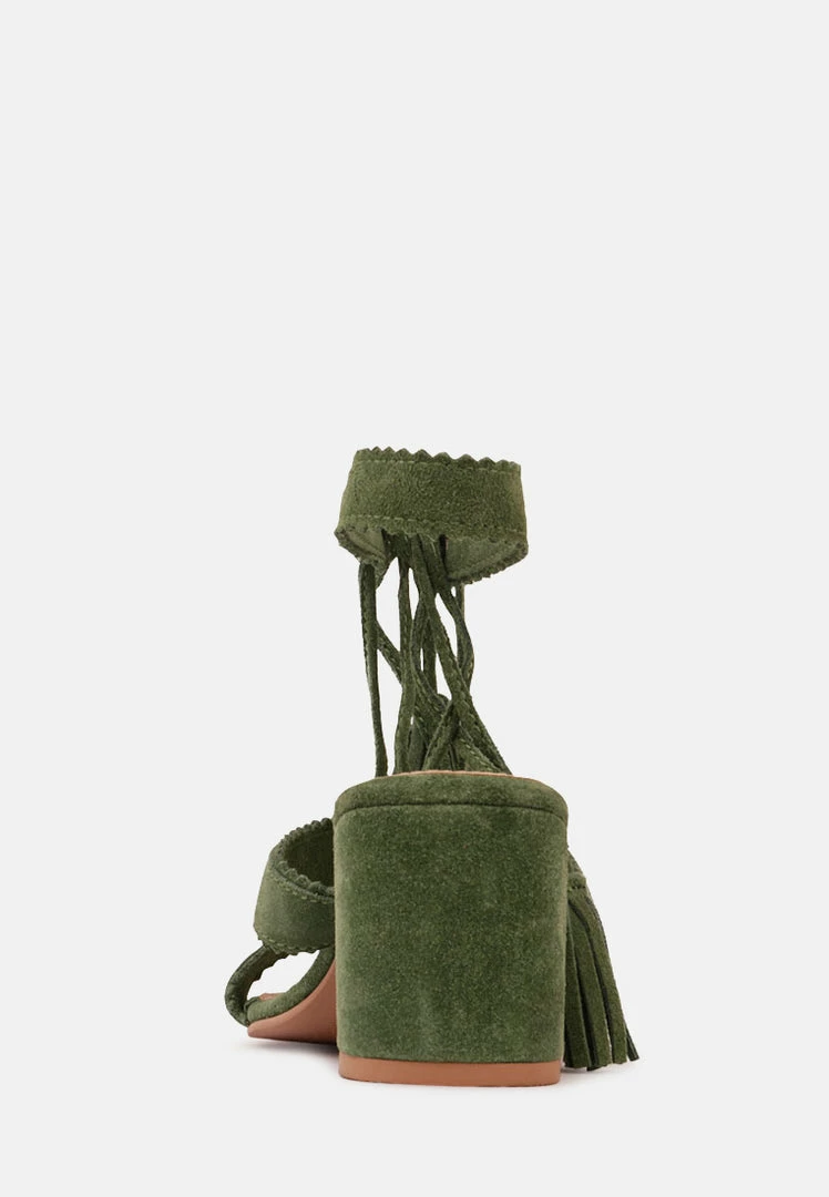 Simply stunning with all the deets: Styled with tie-up laces that provide fastening the ankle with strap, the sandal is a classic piece.